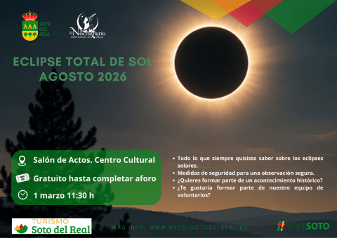 CHARLA DIVULGATIVA: ECLIPSE SOLAR TOTAL 📚 EL NOCTURNARIO NOS RESUELVE TODAS NUESTRAS DUDAS ACERCA DEL ECLIPSE TOTAL DE SOL DEL 12 DE AGOSTO 📅 1 de marzo - Domingo de 11.30 a 14:30 h Salón de Actos del Centro Cultural Pedro de Lorenzo. Soto del Real. 📌Para todos los públicos 💰Entrada gratuita […]