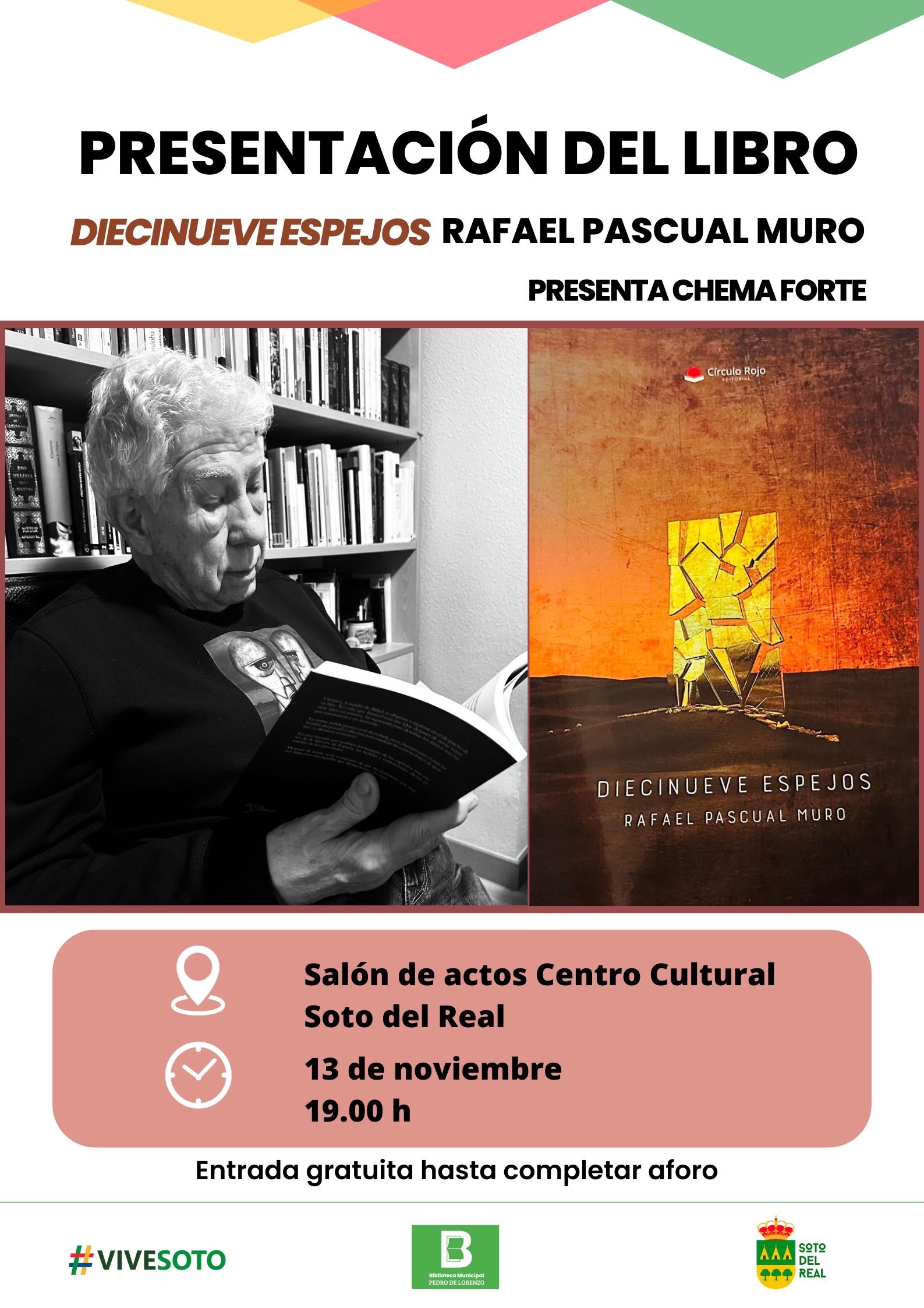Presentación del libro “Diecinueve espejos”, de Rafael Pascual FECHA: Jueves 13 de noviembre HORA: 19:00 h LUGAR: Salón de actos Centro Cultural |