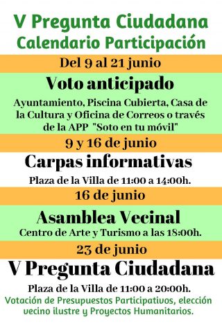 PRESENTACIÓN PROYECTOS PARTICIPATIVOS Y HUMANITARIOS 9 de junio a las 12:00 h Plaza de la Villa Los diferentes Consejos Sectoriales y las organizaciones humanitarias que concurren a la V PREGUNTA CIUDADANA presentan sus proyectos. PRESENTACIÓN PROYECTOS PARTICIPATIVOS Y HUMANITARIOS 16 de junio a las 12:00 h Plaza de la Villa Los diferentes Consejos Sectoriales […]