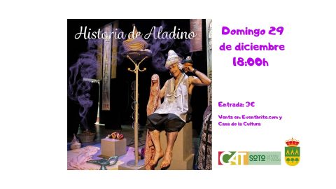 HISTORIA DE ALADINO 29 de diciembre a las 18:00h CAT. Centro de Arte y Turismo Entrdas: Eventbrite.es y Casa de la Cultura Precio: 3€ EDAD RECOMENDADA: A partir de 6 años Más información en: https://elfoteatro.com/historia-de-aladino/ Un chico pobre en la capital de un reino de China, llamado Aladino, es engañado por un mago africano […]
