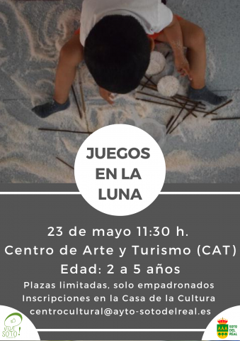 JUEGOS EN LA LUNA 23 de mayo, 11:30h. Centro de Arte y Turismo Plazas limitadas, solo para empadronados. 20 personas (10niños+10adultos) Inscripciones en el Centro Cultural Edades a las que va dirigido: niños y niñas de 2 a 5 años. Instalación de juego donde la luna observará nuestro juego: suelo de sal, embudos blancos y una […]