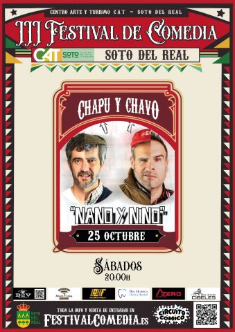 III FESTIVAL DE COMEDIA: NANO Y NINO FECHA: 25/10/2025; HORA: 20:00 h; LUGAR: Centro de Arte y Turismo CAT; ENTRADAS: 12€ en mutick.com
