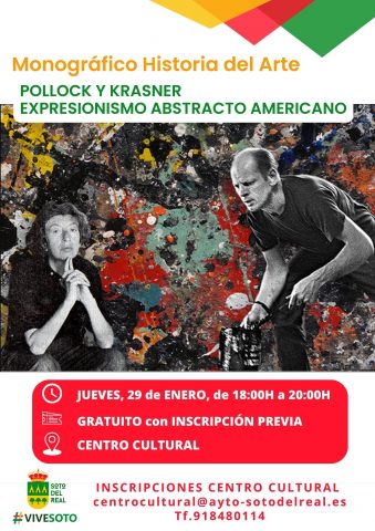 POLLOCK- KRASNER. Monográfico Historia del Arte FECHA: 29 de enero; HORARIO: 18:00 a 20:00 h; LUGAR: Centro cultural; ENTRADA: GRATUITA con INSCRIPCIÓN PREVIA en el Centro Cultural.