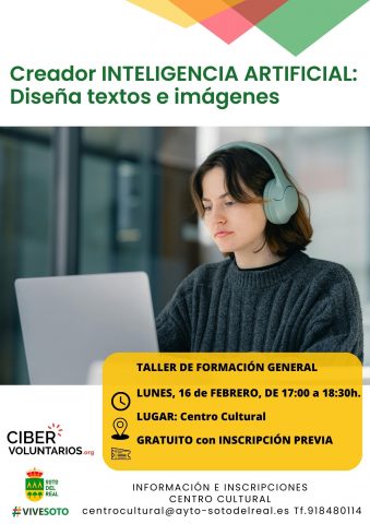 FECHA: 16 febrero; HORARIO: 17:00 a 18:30 h LUGAR: Centro cultural. GRATUITO con INSCRIPCIÓN PREVIA en Centro Cultural Este curso te introduce en el uso de herramientas de inteligencia artificial para la creación de contenido digital: desde textos y diseños gráficos hasta videos y avatares. Aprenderás cómo redactar instrucciones efectivas (prompts) y aprovechar plataformas como […]