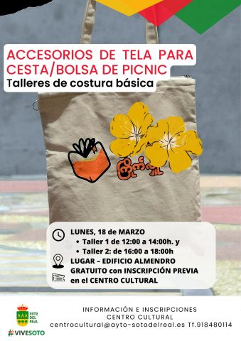 FECHA: 18 marzo; HORARIO: Taller 1 de 12:00 a 14:00 h y Taller 2: de 16:00 a 18:00 h LUGAR: Centro cultural. GRATUITO con INSCRIPCIÓN PREVIA en Centro Cultural