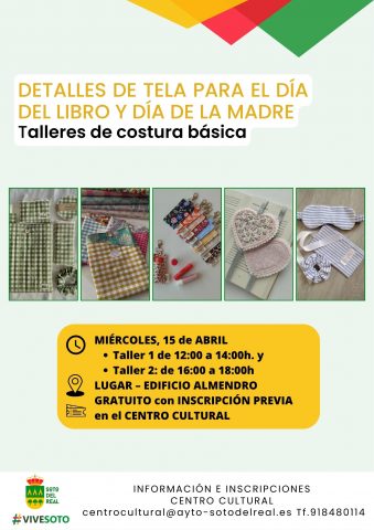FECHA: 15 abril; HORARIO: Taller 1 de 12:00 a 14:00 h y Taller 2: de 16:00 a 18:00 h LUGAR: Edificio calle Almendro. GRATUITO con INSCRIPCIÓN PREVIA en Centro Cultural