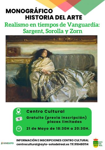 FECHA 21 de mayo; HORA: 18:30 h; LUGAR: Centro Cultural; GRATUITO con INSCRIPCIÓN PREVIA en Centro Cultural En esta propuesta veremos tres bastiones de la figuración y el realismo en tiempos de ruptura en el arte como fue el cubismo.