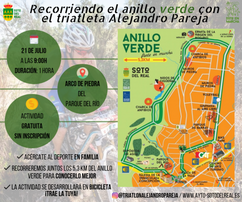 RECORRIENDO EL ANILLO VERDE CON ALEJANDRO PAREJA Domingo 21 de julio Horario: 9:00h (duración aproximada de una hora) Salida desde el Arco de piedra del Parque del Río INSCRIPCIONES: No se necesita inscripción, sólo acudir al lugar de salida Este domingo los habitantes de Soto del Real tendrán la oportunidad de conocer mejor el anillo […]
