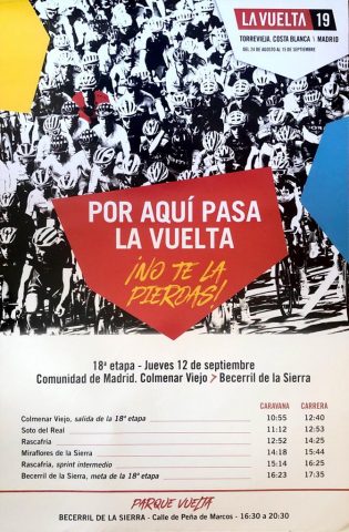 VUELTA CICLISTA 2019 A SU PASO POR SOTO: La carrera tendrá dos pasos por el casco urbano de Soto que producirán cortes de tráfico entre las 11h y la 13h y entre las 14h y las 16h. HORARIOS DE PASO APROXIMADO: 1º PASO: 12:52h 2º PASO: entre las 15:20h y 15:45h ℹINFORMACIÓN COMPLETA AQUÍ: https://www.ayto-sotodelreal.es/vuelta-ciclista-2019-a-su-paso-por-soto-del-real-cortes-de-trafico/