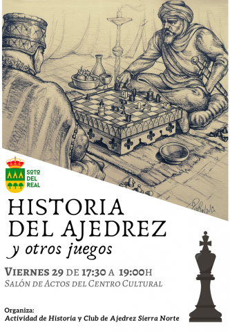Historia del ajedrez y otros juegos Viernes 29 de noviembre de 17:30 a 19:00h. en el Salón de Actos del Centro Cultural. Para todos los públicos.