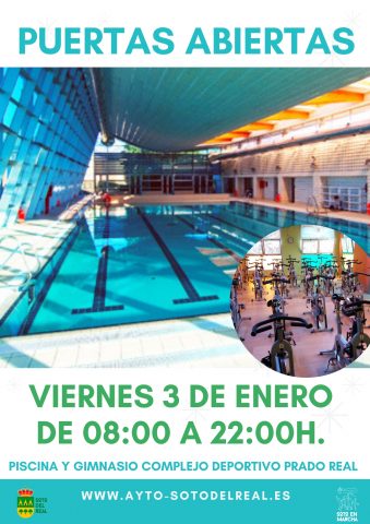 JORNADA DE PUERTAS ABIERTAS EN PISCINA CUBIERTA Y GIMNASIO MUNICIPALES VIERNES 3 ENERO 8:00 a 22:00 h Complejo deportivo Prado Real El próximo 3 de enero, aprovechando las vacaciones navideñas, se realizará una jornada de puertas abiertas en piscina y gimnasio para que todos aquellos que quieran puedan visitar nuestras instalaciones de forma GRATUITA. MÁS […]