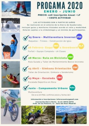 THE MOUNTAIN SCHOOL En 2020 inicia “THE MOUNTAIN SCHOOL” un programa de actividades para conocer mejor nuestro entorno y las diferentes facetas del montañismo, disfrutando de la naturaleza y practicando diferentes deportes. 23 de mayo: escalada INSCRIPCIONES: inforocosoto@gmail.com PRECIO 10 € inscripción anual + l f + coste de actividad