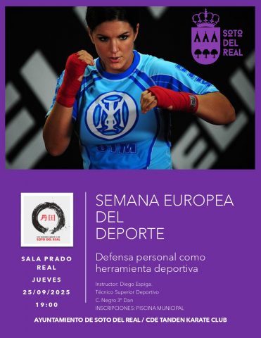 Taller DEFENSA PERSONAL (dentro de la SED 2025) FECHA: J-25 de septiembre; HORA: 19:00 h; LUGAR: Complejo Deportivo Prado Real - Sala ZEN