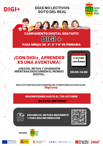 Desde el La CASA DE LA JUVENTUD de Soto del Real, en colaboración con CREA-RED y El Ayuntamiento, os presentamos DIGI+, una Campamento digital gratuito dentro del Programa de Competencias Digitales para la Infancia (CODI), impulsado por el Ministerio de Juventud e Infancia, la Comunidad de Madrid y financiado por la Unión Europea (NextGenerationEU). 👉 […]