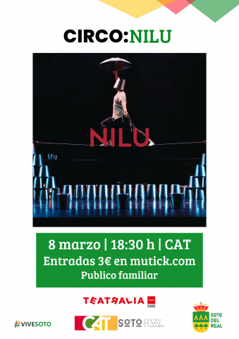 DÍAS: 8 marzo; HORA: 18:30 h; LUGAR: Centro de Arte y Turismo; PÚBLICO: Público familiar. Edad recomendada: +5 años ENTRADA: 3€ en taquilla y mutick.com Duración: 50 minutos. “Nilu” es una propuesta multidisciplinar para público familiar, que combina las artes circenses con la magia, el teatro de objetos y la música en directo. La historia […]