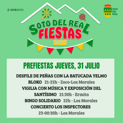 Pasacalles de Peñas con la Batukada Yelmo Bloko 21:00 - 22:00 h.Desde el Zoco hasta Los Morales. Ponte las mejores galas para iniciar las fiestas con tu peña, amigos o familiares. Vigilia con música y exposición del Santísimo - 21:30 h. Ermita. Bingo Solidario - 22:00 h. Los Morales. Organizado por ELCYD, el dinero recaudado irá […]