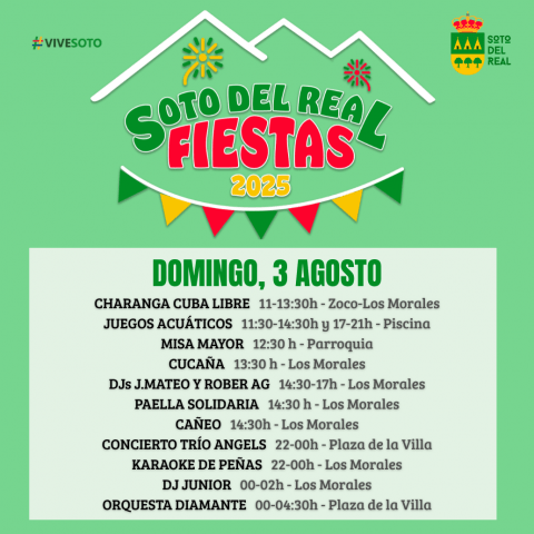 Pasacalles Charanga Cuba Libre - 11:00 - 13:30 h. Salida desde el Zoco hasta Los Morales. Juegos acuáticos - 11:30 - 14:30 h. Piscina de Verano. Misa Mayor - 12:30 h. Iglesia Parroquial. Cucaña amenizada por Los Fugitivos - 13:30 h. Los Morales. DJ´s J. Mateo y Rober AG - 14:30 h.- 17:00 h. Los […]