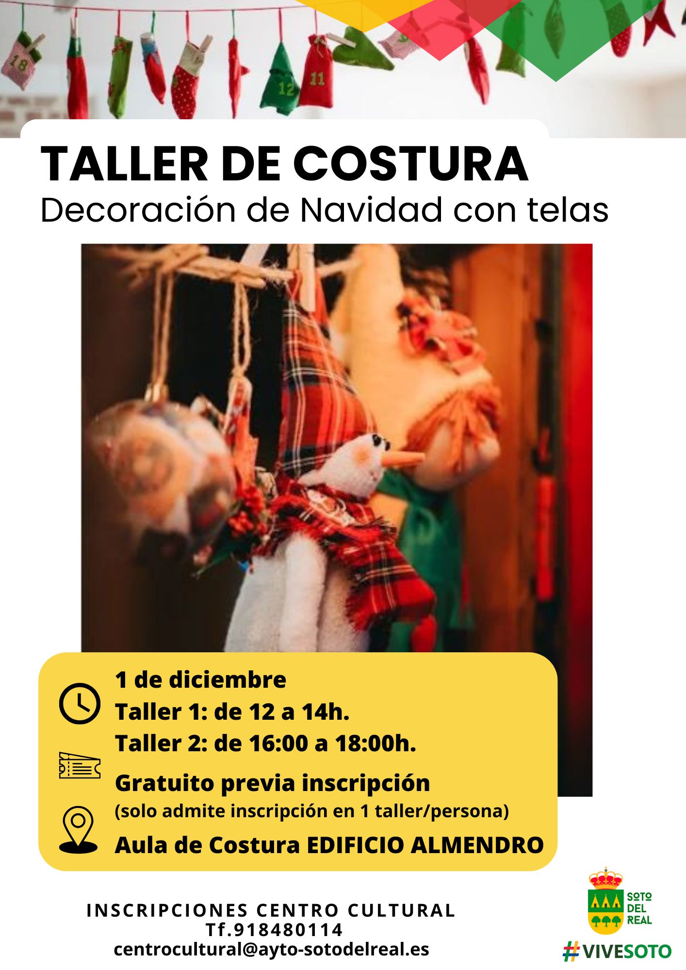 Taller de costura FECHA: 1 de diciembre; HORA: dos talleres: matutino, de 12:00 a 14:00 h; vespertino, de 16:00 a 18:00 h; LUGAR: Aula Costura - Edificio Almendro. GRATUITO previa INSCRIPCIÓN en Centro Cultural (únicamente se puede solicitar uno de los talleres). Aprenderemos a realizar decoración navideña para el hogar utilizando la costura y telas […] |