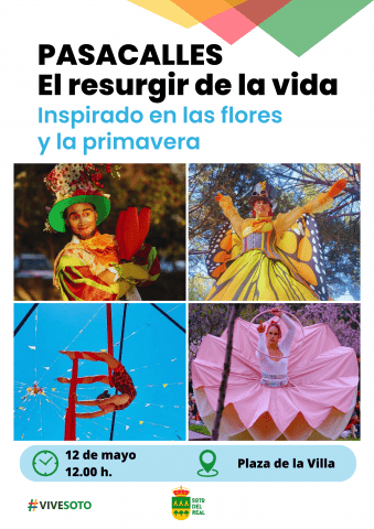 Pasacalles inspirado en las flores y la primavera: el resurgir de la vida. 12 de mayo a las 12:00h. Salida desde la Plaza de la Villa al Parque del Río.