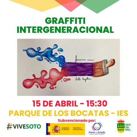 Acción intergeneracional que tiene como objetivo crear una experiencia común entre nuestros jóvenes y mayores del municipio. Los alumnos del IES, los jóvenes de la Casa de la Juventud y los mayores de nuestras residencias llevarán a cabo un graffiti en común en el parque de los bocatas, junto al IES Sierra de Guadarrama. El […]
