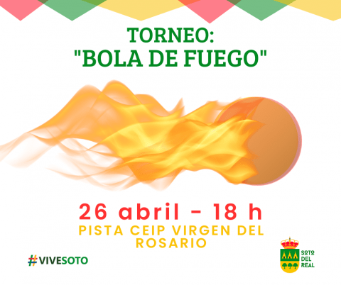 DÍA: 26 de abril; HORA: 18:00 h; LUGAR: Pista deportiva del CEIP Virgen del Rosario. INSCRIPCIÓN:A través del correo juventud@ayto-sotodelreal.es y en la casa de la juventud de manera presencial en el horario de apertura. PÚBLICO: Jóvenes de 11 a 17 años. Torneo de Bola de Fuego, actividad juvenil y deportiva en la pista de […]