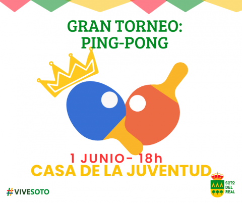 DÍA: 1 junio; HORA: 18:00 h; LUGAR: Casa de la Juventud; PÚBLICO: 11 a 17 años; INSCRIPCIONES: gratuitas en juventud@ayto-sotodelreal.es Gran Torneo de Ping-Pong. Competición 1 contra 1 con las normas que se han establecido en la Casa de la Juventud junto con las bases del juego. El sorteo de turnos y rivales se celebrará […]