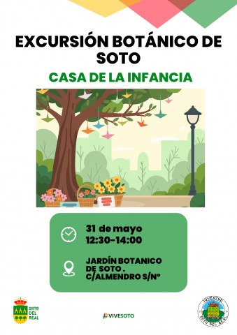 FECHA: 31 de mayo; HORA: 12:30 h; LUGAR: Casa de la Juventud e Infancia. PÚBLICO: 4º, 5º y 6º de Primaria (nacidos entre 2016 y 2014); INSCRIPCIONES: Inscripción previa en la Casa de la Juventud o en juventud@ayto-sotodelreal.es Vamos juntos al Jardin Botanico Municipal ubicado en la calle almendro s/nº para realizar algunas actividades ludicas […]