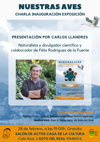 Del 24 de febrero al 3 de abril (suspendido del 11 de marzo al 25 de marzo) EXPOSICIÓN: “NUESTRAS AVES” De lunes a viernes de 9:00 h. a 14:00 h. y de 16:00 h. a 21:00 h. Visitas guiadas. Consultar Casa de la Cultura. Sala de exposiciones. Esta exposición nace de la colaboración de Marisa Martínez, […]