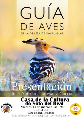 Asociación Naturalista Primilla (ANAPRI) y Asociación Cultural Chozas de la Sierra Presentación libro. Guía de Aves Dehesa de Navalvillar por José Antonio Matesanz García, presidente de ANAPRI. Este libro nos muestra la gran variedad de aves que habitan en la zona norte de Madrid durante el año, especies que han sido observadas en la Dehesa […]