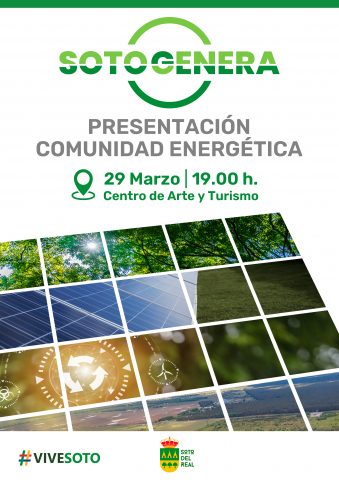 LUGAR: CAT, Centro de Arte y Turismo de Soto del Real DÍA: 29 de marzo HORA: 19.00 h. PÚBLICO: Entrada libre hasta completar aforo El próximo miércoles 29 de marzo, a las 19.00 h. en el CAT, tendrá lugar la presentación de la nueva comunidad energética de Soto del Real, una iniciativa que se está […]