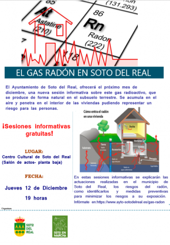 SESIONES INFORMATIVAS SOBRE EL GAS RADÓN EN SOTO DEL REAL. En estas sesiones se explicarán las acciones llevadas a cabo por el Ayuntamiento de Soto del Real en el municipio, los riesgos del radón, cómo identificarlos y qué medidas preventivas se pueden tomar para minimizar los riesgos a su exposición. Se contará con la presencia […]
