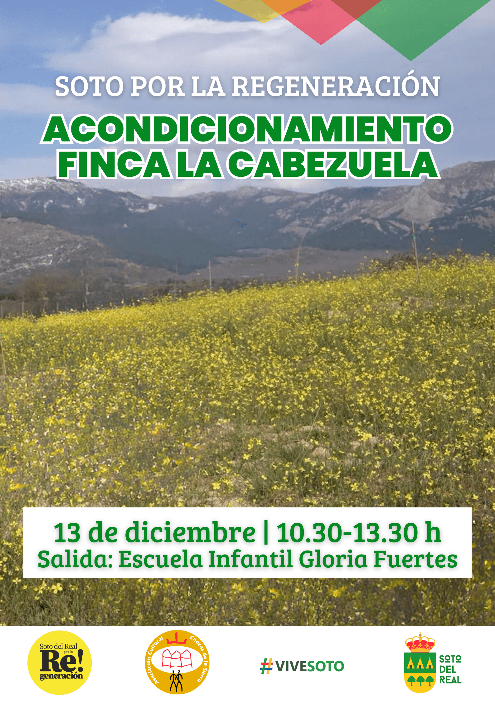Soto por la regeneración: Acondicionamiento de La Cabezuela El sábado 13 de diciembre, de 10:30 a 13:30 h, nos unimos para acondicionar y restaurar la finca de La Cabezuela. Vecinos […]