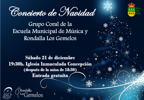 SÁBADO 21 CONCIERTO DE NAVIDAD CORAL ESCUELA MUNICIPAL DE MÚSICA 19:15 h Parroquia Inmaculada Concepción Repertorio: Carrascosa El Abanico El Fallero María la Portuguesa La Vida es Bella Aleluya Blanca Navidad Noche de Paz Popurri de Villancicos