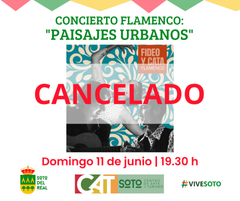 Cancelado el concierto flamenco "Paisajes urbanos" por lesión de uno de los integrantes del grupo. En los próximos días se devolverá el importe íntegro de las entradas compradas. Disculpen las molestias. DÍA: 11 de junio; HORA: 19:30 h; LUGAR: C.A.T; PÚBLICO: adulto y juvenil; ENTRADA: 8€ en mutickeros.com; Fideo, Fideito de Madrid (cantaor carismático), y […]