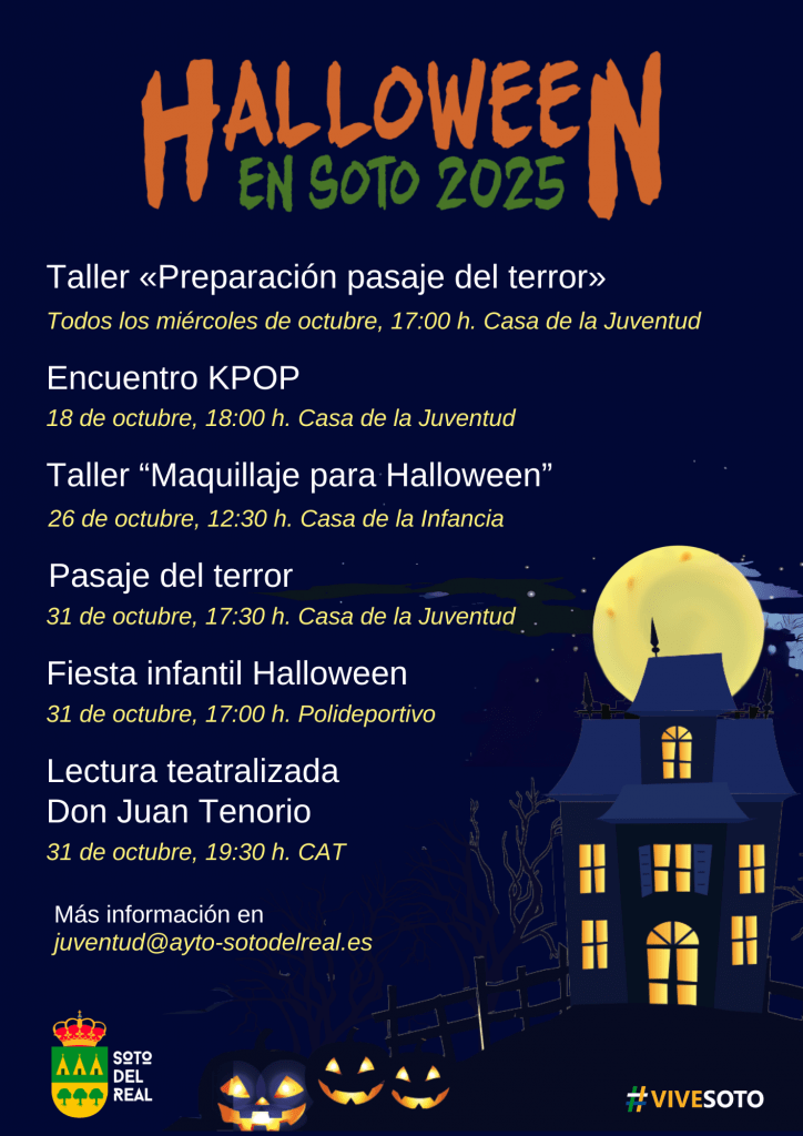 “Halloween se ha convertido en una cita muy esperada en Soto, y este año queríamos que todos los públicos pudieran disfrutarla. Hemos preparado una programación diversa que combina actividades familiares, propuestas juveniles y eventos culturales para vivir esta fecha de una forma divertida y segura”, señala Nacho García, concejal de Juventud. “Animamos a todos los vecinos y vecinas a participar, a disfrutar del ambiente, a disfrazarse y a compartir juntos este día.”