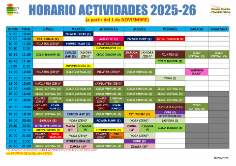 • Consulta aquí el horario de actividades dentro del abono