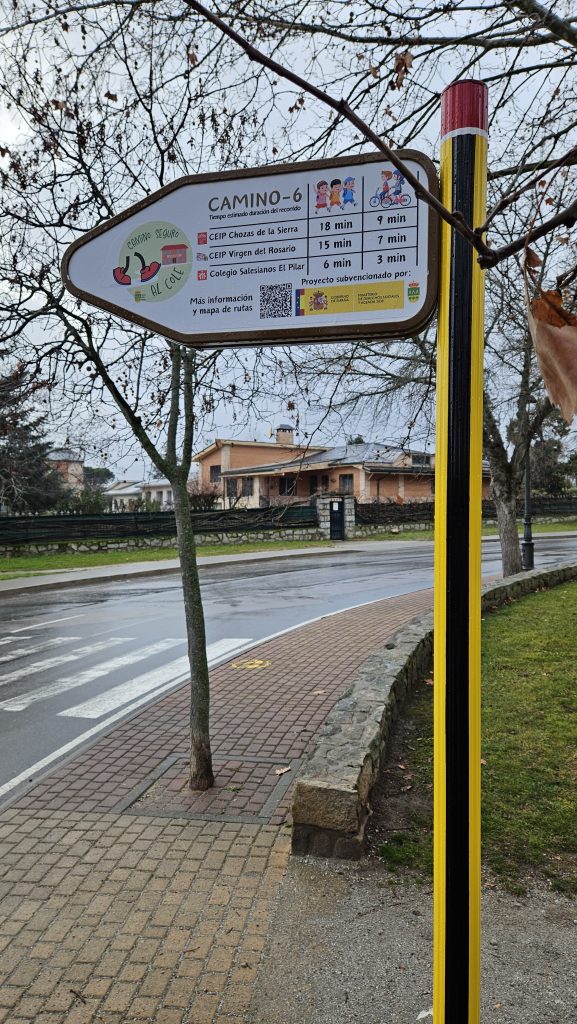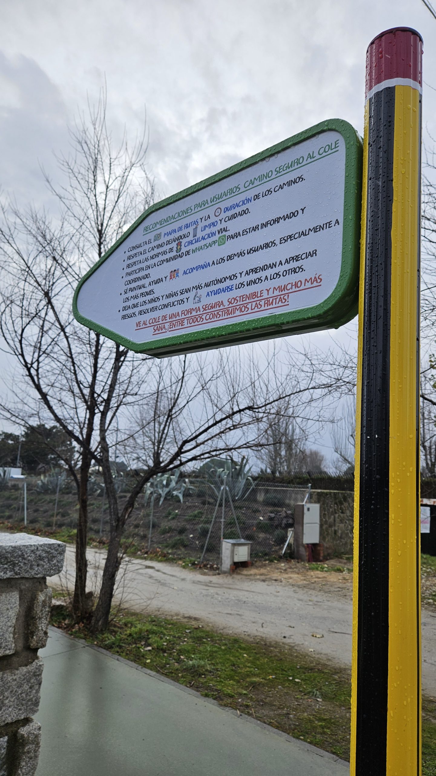A principios de año se hicieron las últimas actuaciones previstas en el proyecto inicial Camino Seguro al Cole con la instalación de vinilos informativos en los tótems, que indican el punto de salida de cada camino, y las marcas “dientes de dragón”, que dan sensación de estrechez en la calzada para que los conductores tiendan a reducir la velocidad, pintadas en la Avda. Chozas de la Sierra, frente a la entrada del CEIP Virgen del Rosario.