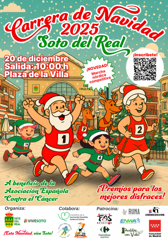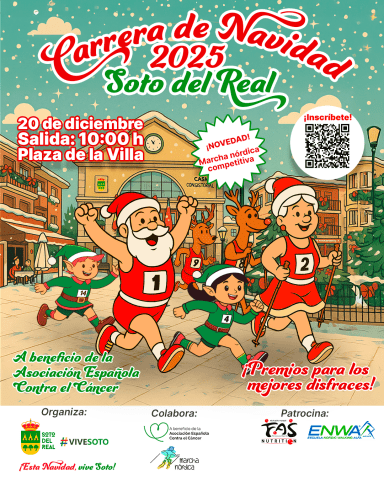- El Ayuntamiento de Soto del Real invita a vecinos y vecinas a disfrutar de una jornada deportiva, festiva y solidaria el próximo 20 de diciembre, con recorridos para todas las edades y un ambiente lleno de espíritu navideño.